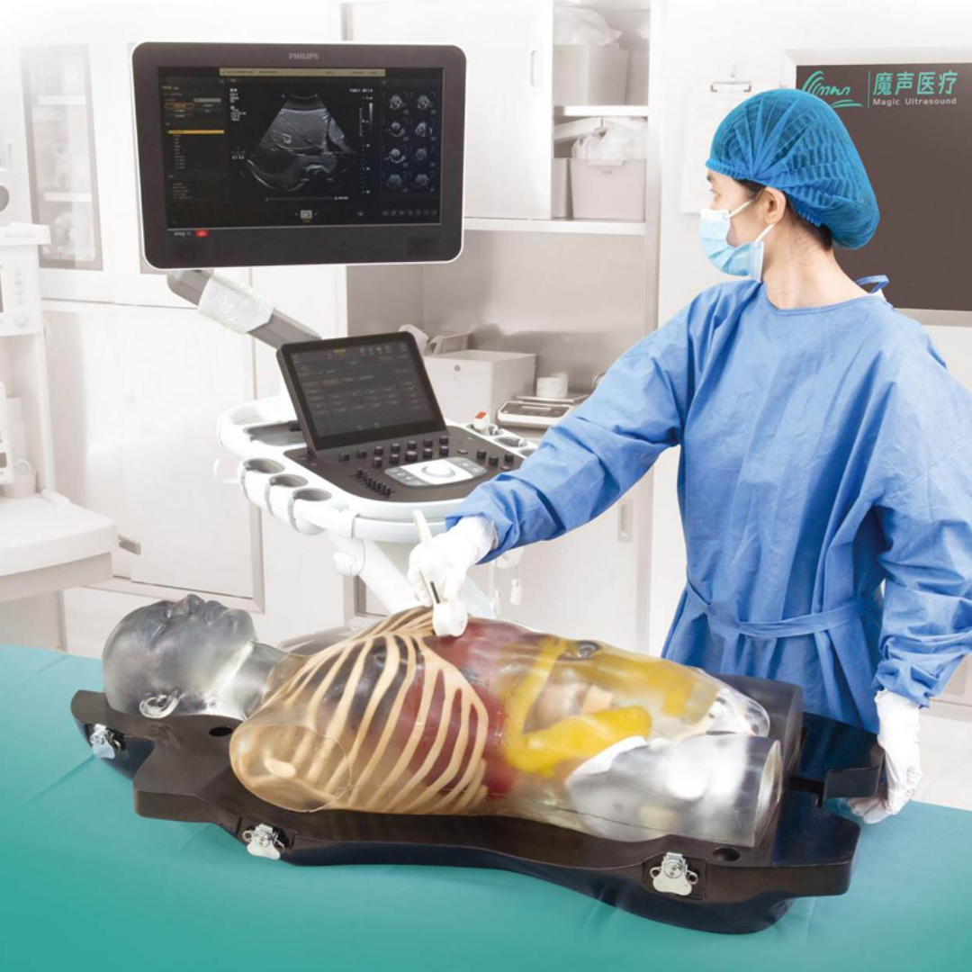Tejido de Polímero de Alta Fidelidad: Imita la ecogenicidad y la atenuación del tejido humano real bajo cualquier ecógrafo.